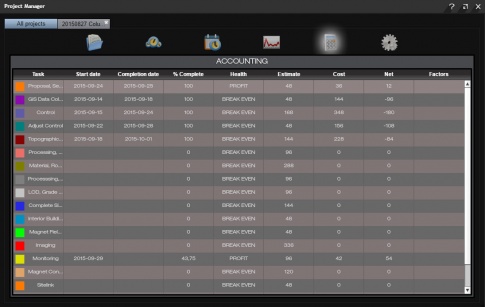 Accounting gives an up-to-date summary for each task in the project in tabular form. Columns in the table include the following:
