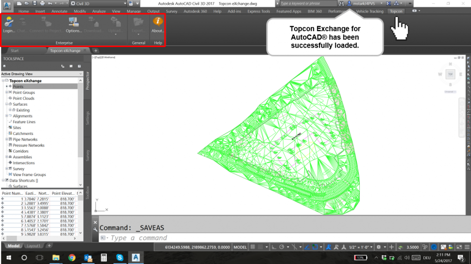 • Topcon eXchange for AutoCAD is a free add-on which installs a Topcon ribbon into the AutoCAD user interface