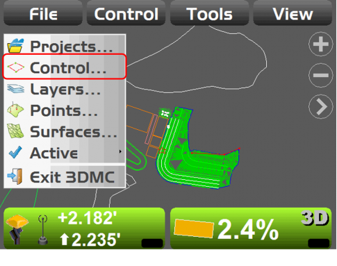 • To access the Coord system option to work with State Plane coordinates select Control then the Coords tab.