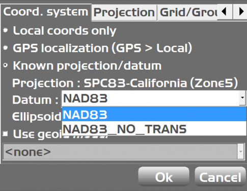 • When working on jobs in State Plane Coordinates the operator will need to change from using GPS localization to Known projection/datum.