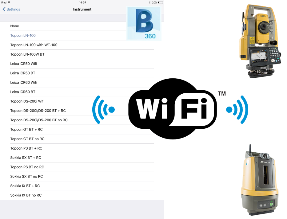 - BIM 360 Layout supports both Wi-Fi and Bluetooth connections