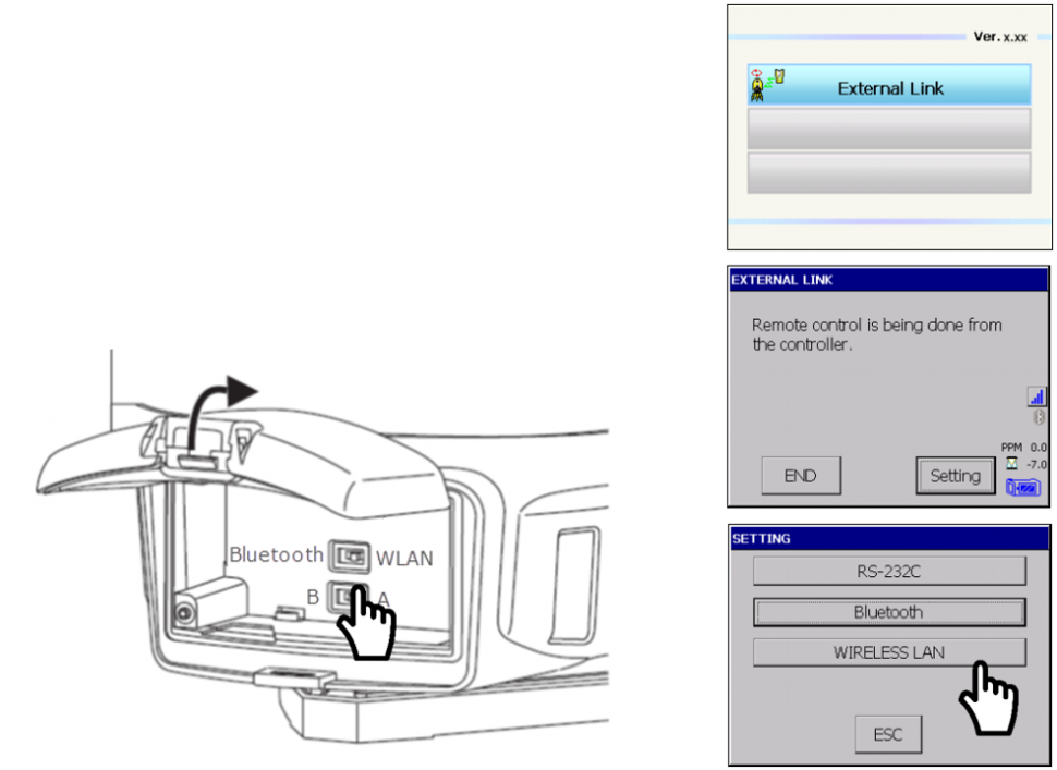 - If you are using a DS-200i exit the observation screen, hit PRG and select External Link. Select WIRELESS LAN in the Settings dialog