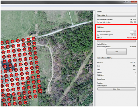 • To continue a mission later or to only fly parts of a mission, each flight plan can be started and stopped at any waypoint.  Using the right preferences and information pane: