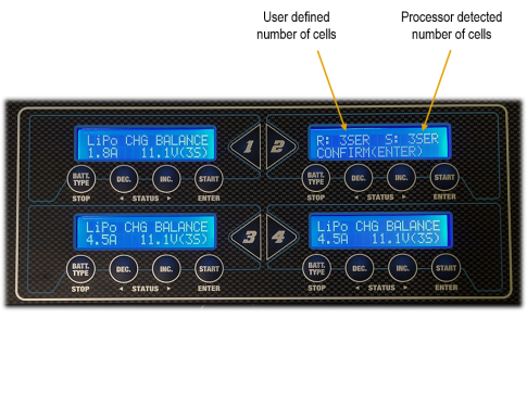 - If these do not match, press the BATT TYPE/STOP button to navigate to the previous screen to carefully check the number of cells.