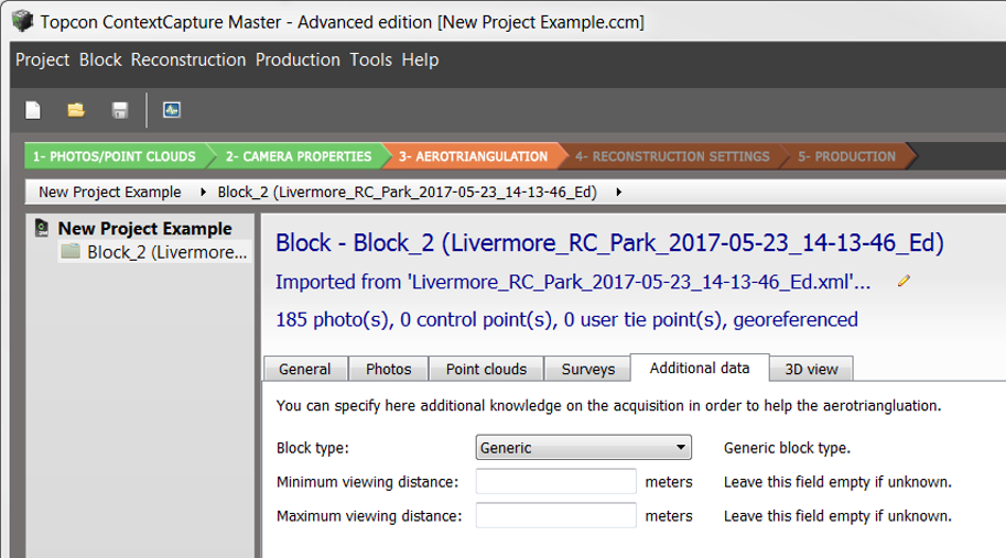 • If there are multiple flights to be processed, repeat this process as necessary for all *.xml photo blocks imported.