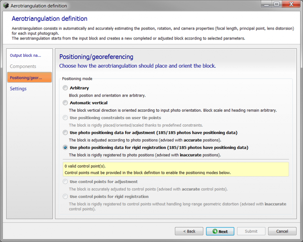 • Use photo positioning data for rigid registration – the block is rigidly registered to photo positions (advised with inaccurate positions).